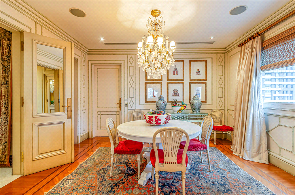 Apartamento no miolo do Jardim Europa, em uma das ruas mais exclusivas de São Paulo, se não a mais exclusiva delas. Edificio construído pela São José, que dispensa apresentações e projetado por Pablo Slemenson. O Edifício conta com um excelente sistema de segurança, 8 vagas de garagem, gerador, piscina em raia coberta, quadra, Salão de festas e todas as facilidades que um imóvel de Alto luxo tem que ter. Quanto ao apartamento, foi totalmente decorado pelo Renomado Jorge Elias, com riqueza em detalhes de acabamentos e espaços claros, amplos e impecáveis. Uma das propriedades mais luxuosas de São Paulo