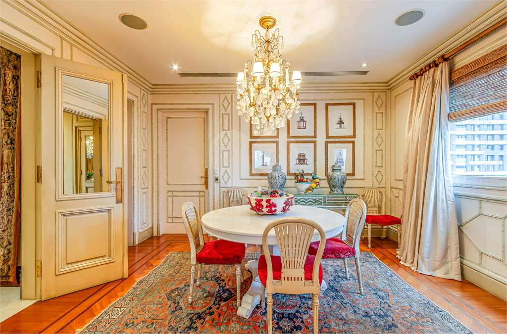 Apartamento no miolo do Jardim Europa, em uma das ruas mais exclusivas de São Paulo, se não a mais exclusiva delas. Edificio construído pela São José, que dispensa apresentações e projetado por Pablo Slemenson. O Edifício conta com um excelente sistema de segurança, 8 vagas de garagem, gerador, piscina em raia coberta, quadra, Salão de festas e todas as facilidades que um imóvel de Alto luxo tem que ter. Quanto ao apartamento, foi totalmente decorado pelo Renomado Jorge Elias, com riqueza em detalhes de acabamentos e espaços claros, amplos e impecáveis. Uma das propriedades mais luxuosas de São Paulo