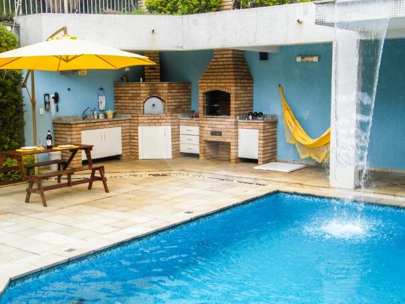 Casa com 4 suítes, com closet ou armários embutidos, sala de TV-escritório com varanda, sala de jantar e salas de lareira e estar-bar, copa-cozinha com despensa e área de serviço com varanda, dependências de emprega completa e totalmente independente da residência, 6 vagas de garagem, área gourmet com churrasqueira e forno de pizza, banheiro completo que serve a área de lazer, piscina com cascatas e ampla jacuzzi. Todo o acabamento em mármore, granito e madeira, aquecimento central com placas solares (todo o encanamento da casa em cobre), vários jardins suspensos e floreiras, todos os armários feitos em marcenaria com madeira, pontos de água quente em todas as torneira da casa. Venha conhecer.