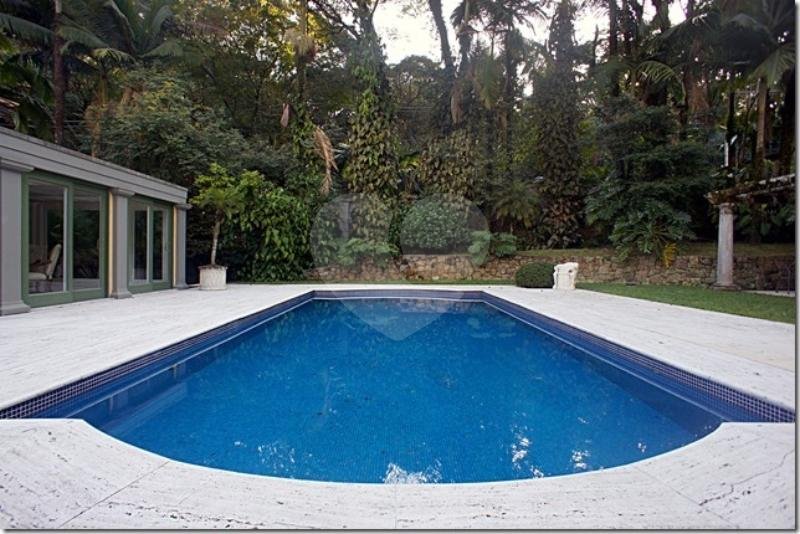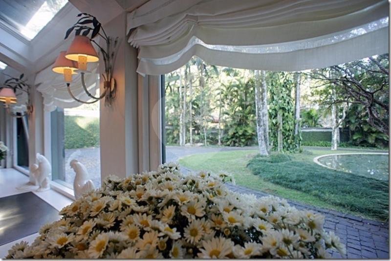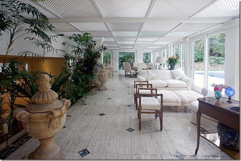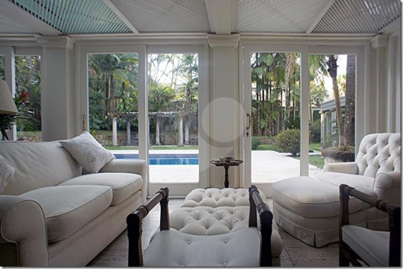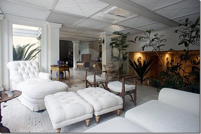 Belíssima casa projeto assinado pela arquiteta Ana Maria Vieira Santos. Uma casa icônica totalmente rodeada por um maravilhoso jardim, e palmeiras centenárias com vegetação tropical. Os grandes janelões trazem muita iluminação em toda a casa, o imponente pé direto duplo em alguns dos ambientes trazem uma sensação muito agradável de liberdade. Logo na entrada amplo living com vários ambientes integrados, todo os ambientes com mármore travertino bruto, belíssima lareira na sala de estar e sala de tv. Escritório com pé direito duplo com domus por onde entra uma agradável luz natural. Sala de jantar, copa, prataria, e despensa. Terraço fechado voltado para o jardim e piscina, área de descanso integrado a saúna e sala de fitness. Um charmoso pergolado completam a linda paisagem. Na área intima são 3 amplas suites com walking closet. Dependências de empregados. Porteira fechada!