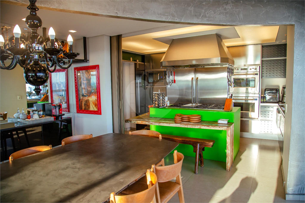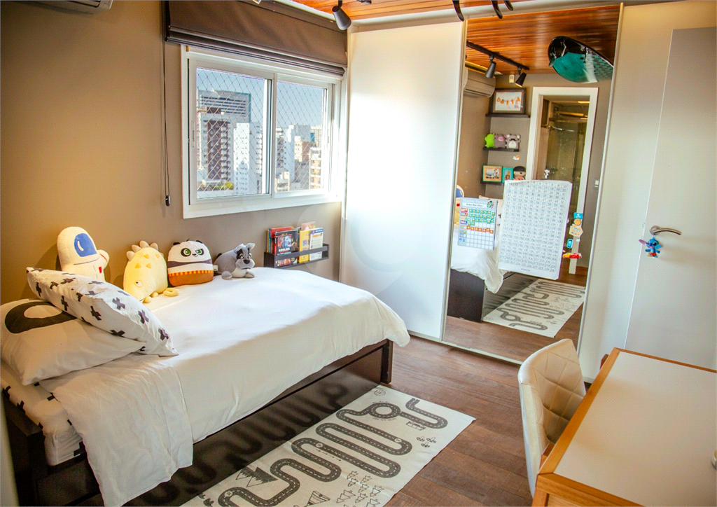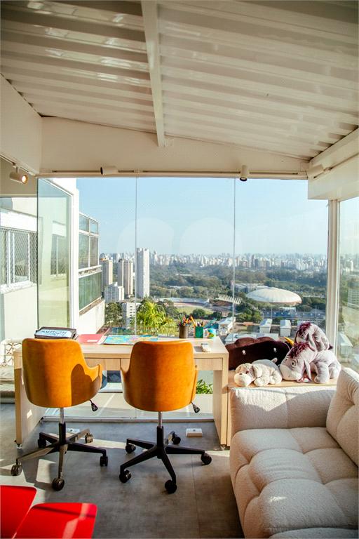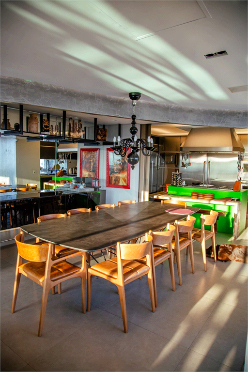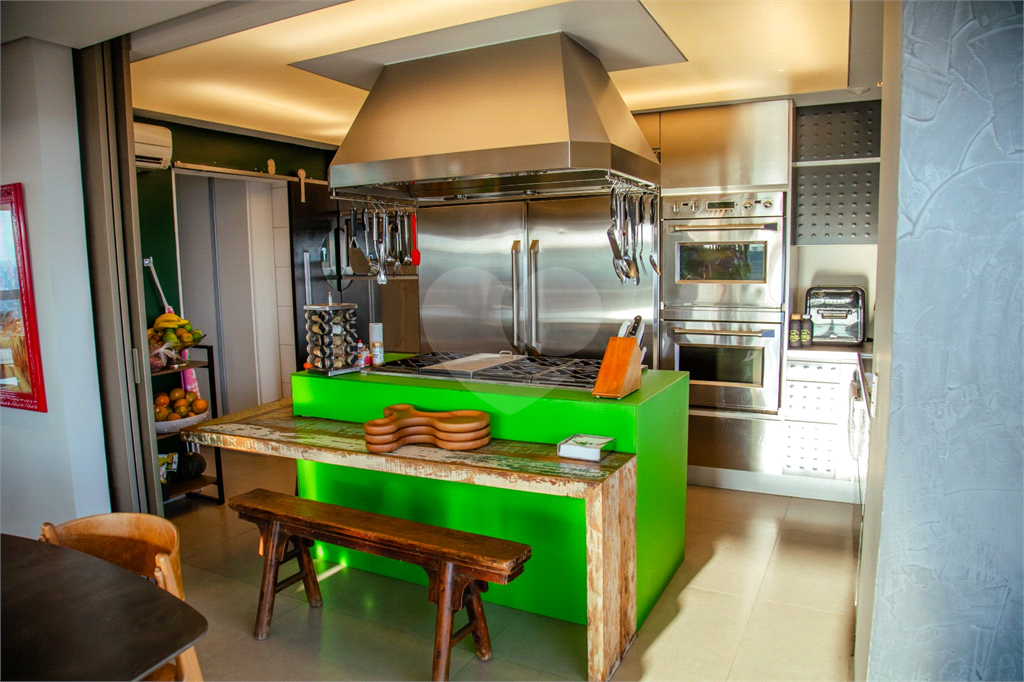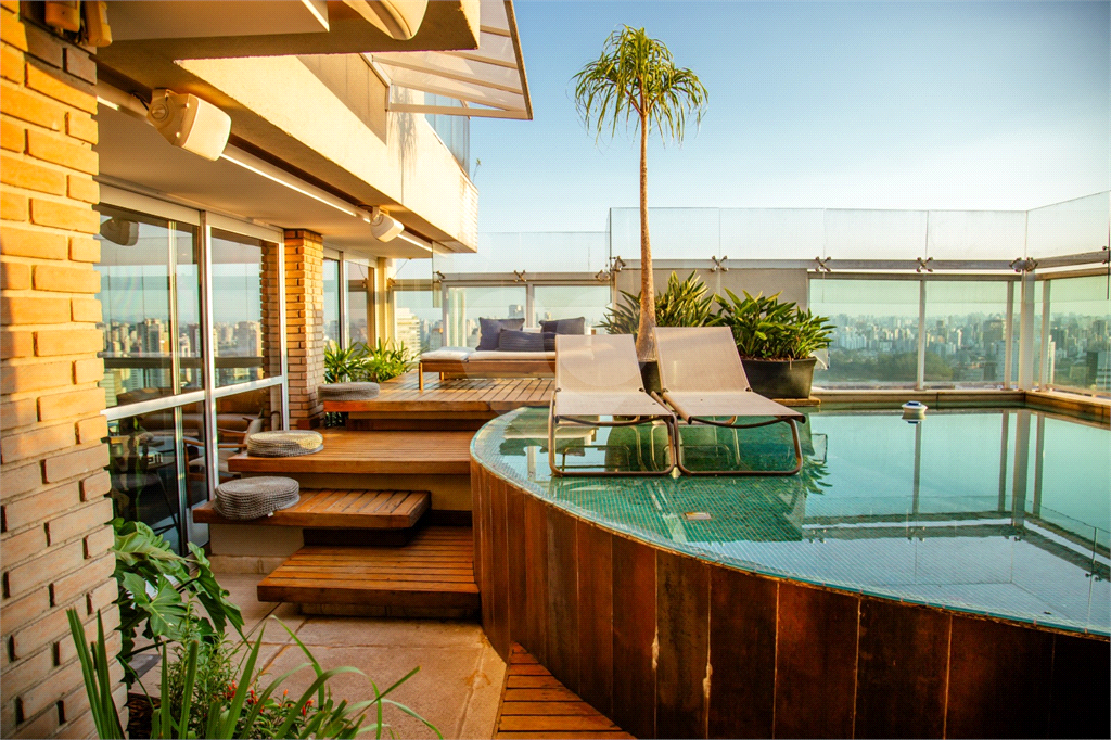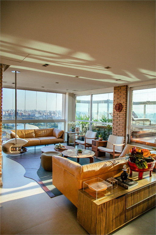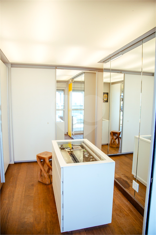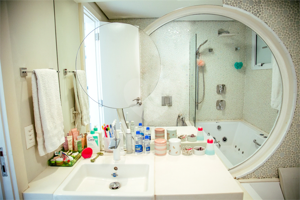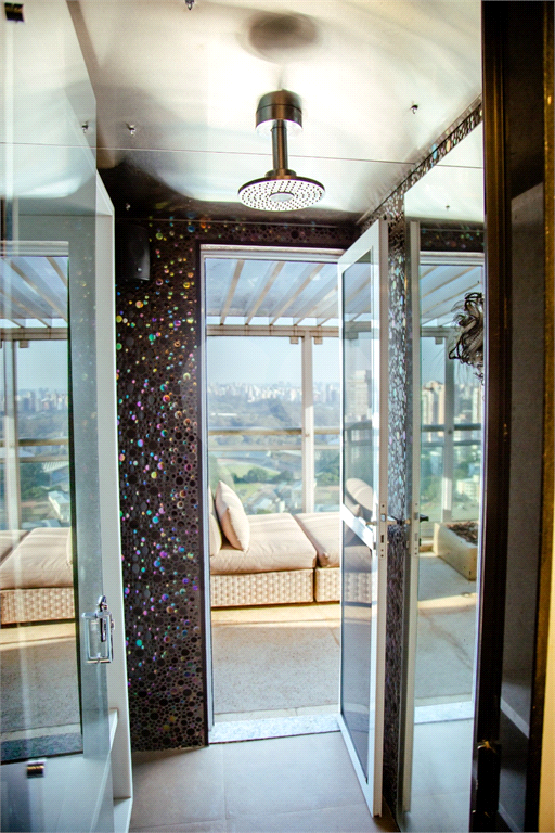 Cobertura duplex Andar de cima: Suíte Master com 2 banheiros (senhor e senhora) e 2 closets (Um dos banheiros tem sauna). Varanda privada da suíte master com deck, mirante e ofurô, escritório, 2 suítes e brinquedoteca/quarto de estudos Andar de baixo: 1 quarto sem ser suíte (hoje usamos como um segundo escritório). Sala de TV com projetor e telão, 1 lavabo e 2 banheiros, Área externa com deck, churrasqueira, chuveiro, Piscina aquecida Acabamentos: Cozinha e Adega - Valcuccine. Marcenaria – Segatto Casa toda automatizada: som, luzes, TV, persianas e ar-condicionado Todos os metais (chuveiros, torneiras) e louças (pias, cubas) são são importados Móveis: Estúdio Bola, Ovoo Eletrodomésticos: GE Monogram 5 vagas de garagem e 1 quarto de depósito na garagem