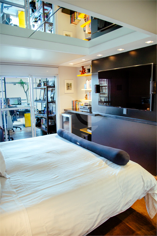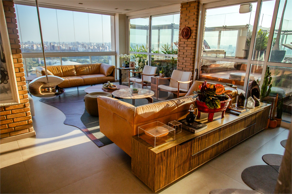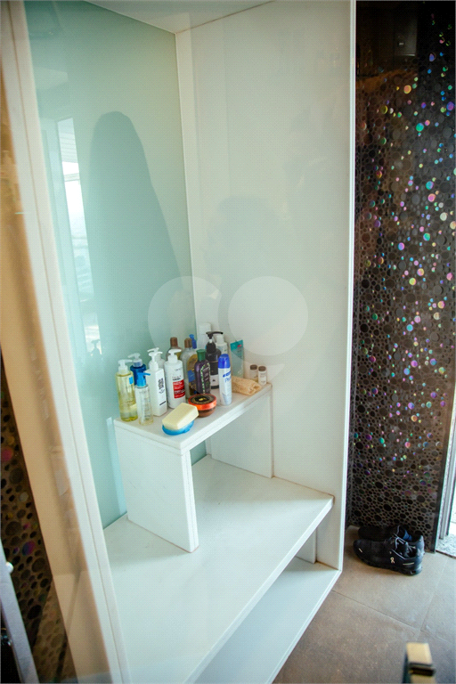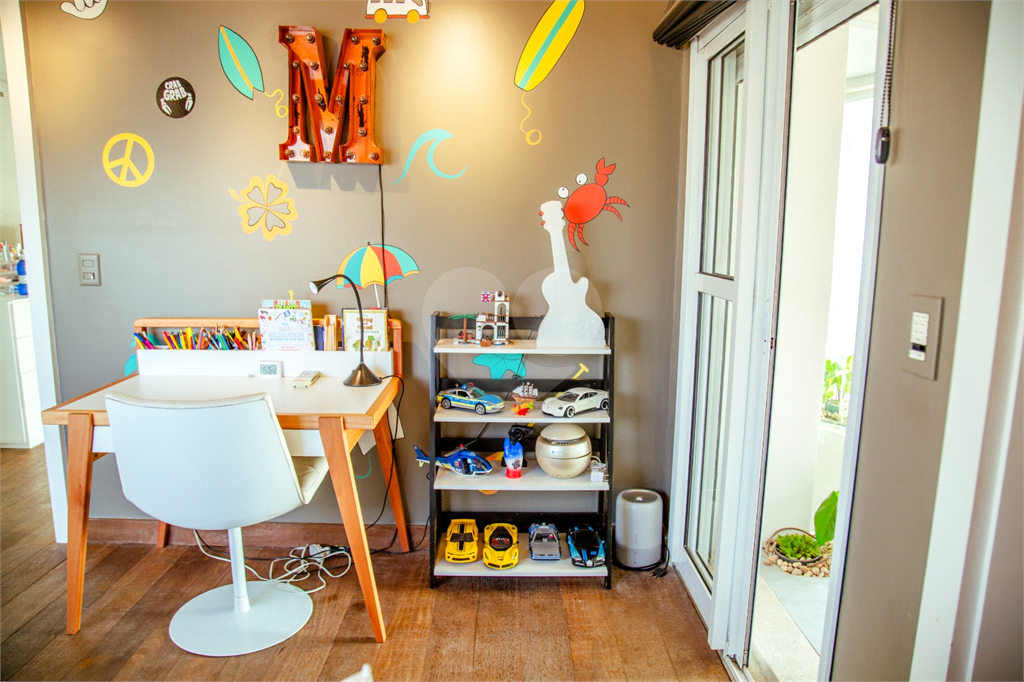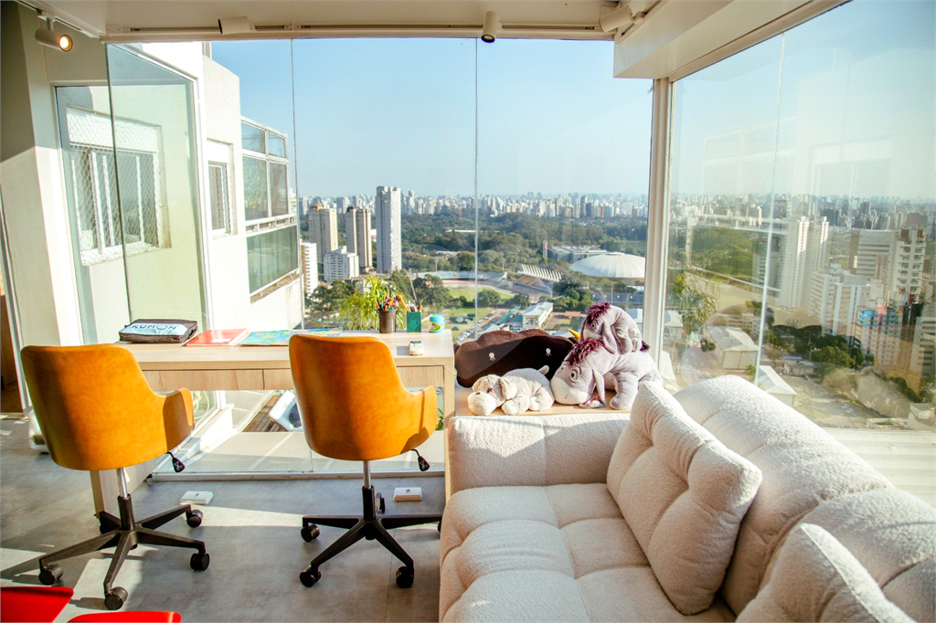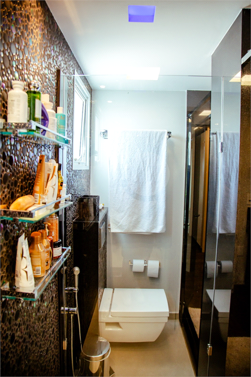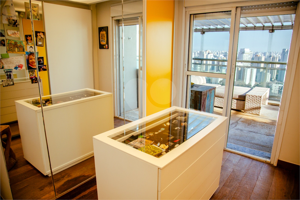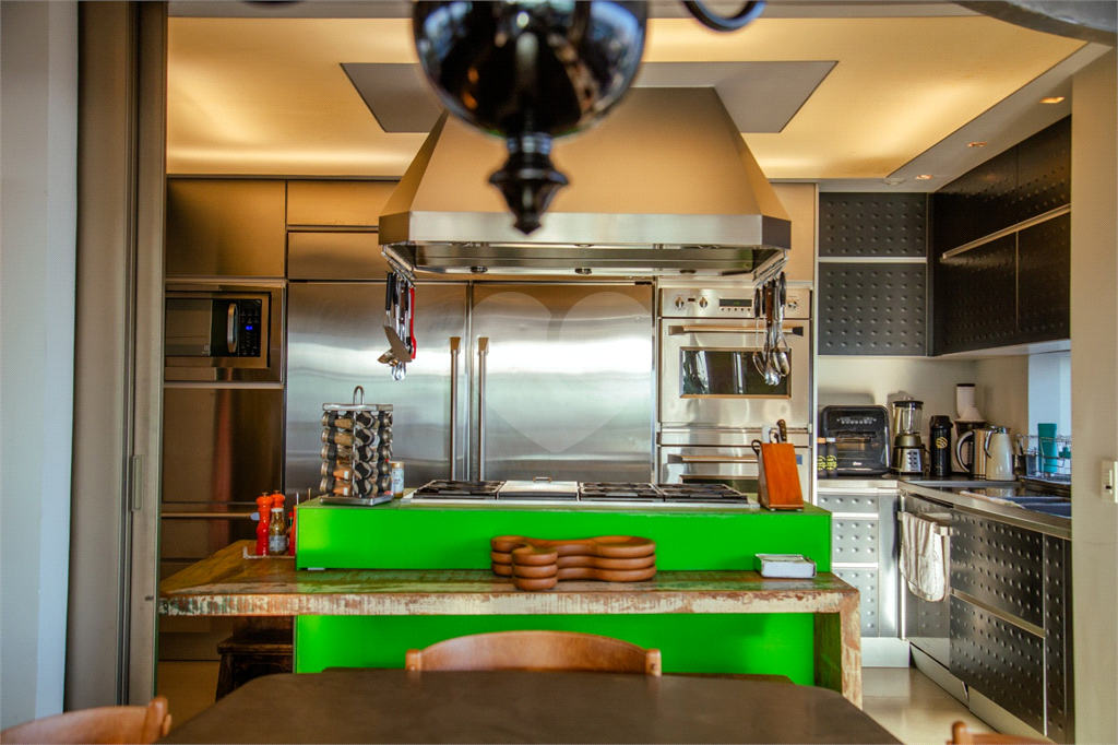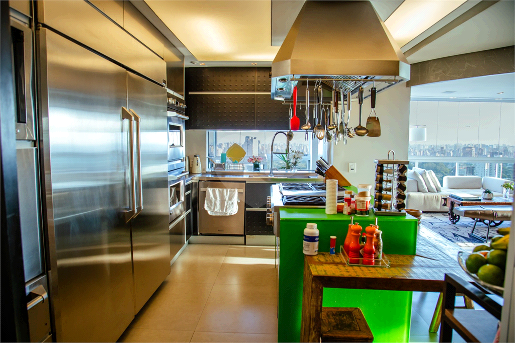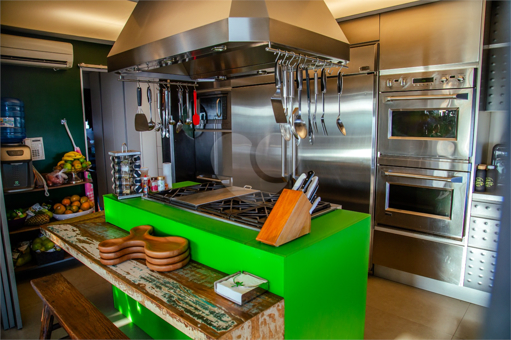 Cobertura duplex Andar de cima: Suíte Master com 2 banheiros (senhor e senhora) e 2 closets (Um dos banheiros tem sauna). Varanda privada da suíte master com deck, mirante e ofurô, escritório, 2 suítes e brinquedoteca/quarto de estudos Andar de baixo: 1 quarto sem ser suíte (hoje usamos como um segundo escritório). Sala de TV com projetor e telão, 1 lavabo e 2 banheiros, Área externa com deck, churrasqueira, chuveiro, Piscina aquecida Acabamentos: Cozinha e Adega - Valcuccine. Marcenaria – Segatto Casa toda automatizada: som, luzes, TV, persianas e ar-condicionado Todos os metais (chuveiros, torneiras) e louças (pias, cubas) são são importados Móveis: Estúdio Bola, Ovoo Eletrodomésticos: GE Monogram 5 vagas de garagem e 1 quarto de depósito na garagem