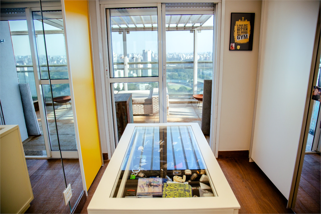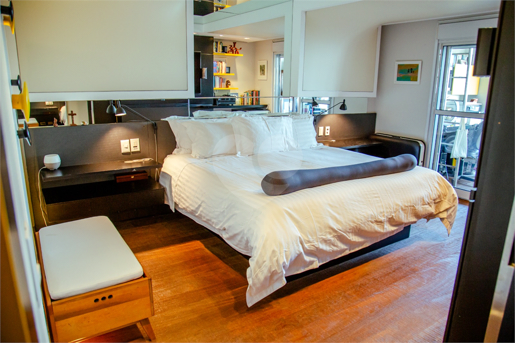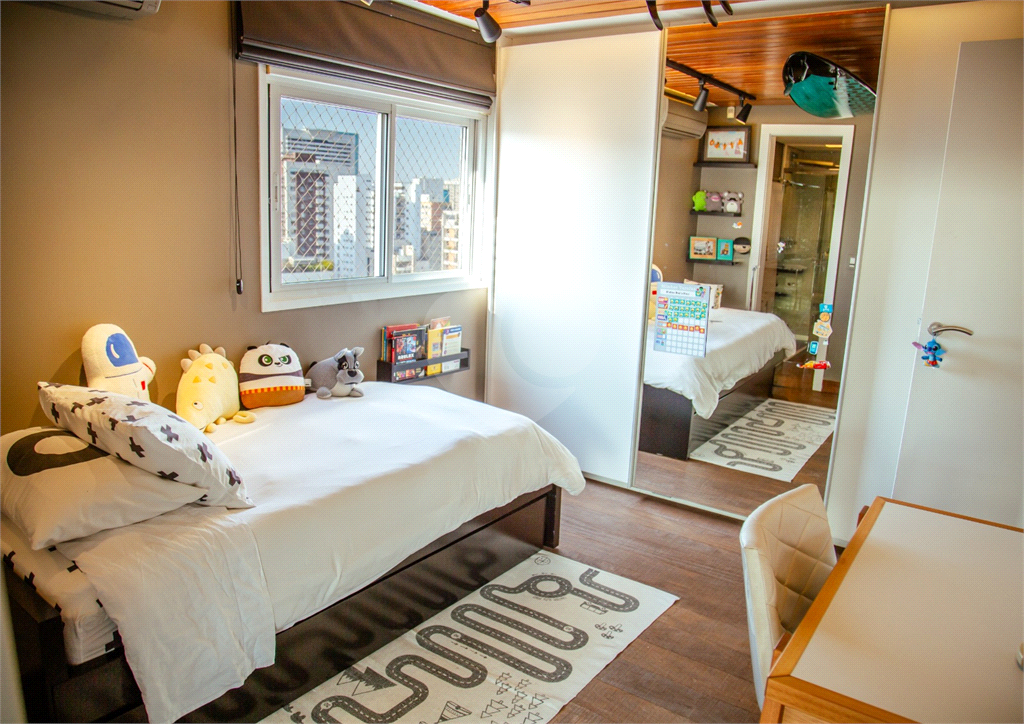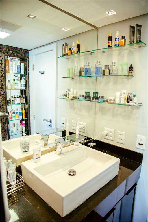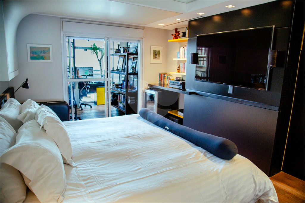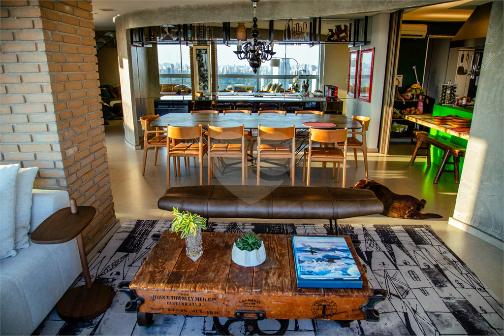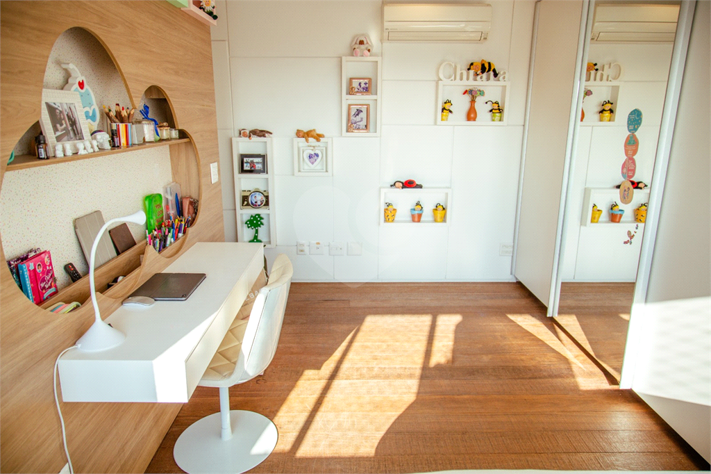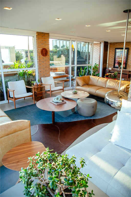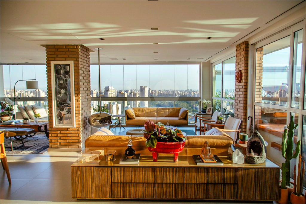 Cobertura duplex Andar de cima: Suíte Master com 2 banheiros (senhor e senhora) e 2 closets (Um dos banheiros tem sauna). Varanda privada da suíte master com deck, mirante e ofurô, escritório, 2 suítes e brinquedoteca/quarto de estudos Andar de baixo: 1 quarto sem ser suíte (hoje usamos como um segundo escritório). Sala de TV com projetor e telão, 1 lavabo e 2 banheiros, Área externa com deck, churrasqueira, chuveiro, Piscina aquecida Acabamentos: Cozinha e Adega - Valcuccine. Marcenaria – Segatto Casa toda automatizada: som, luzes, TV, persianas e ar-condicionado Todos os metais (chuveiros, torneiras) e louças (pias, cubas) são são importados Móveis: Estúdio Bola, Ovoo Eletrodomésticos: GE Monogram 5 vagas de garagem e 1 quarto de depósito na garagem