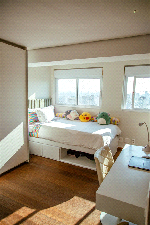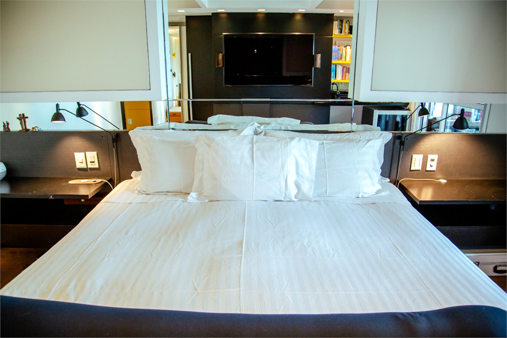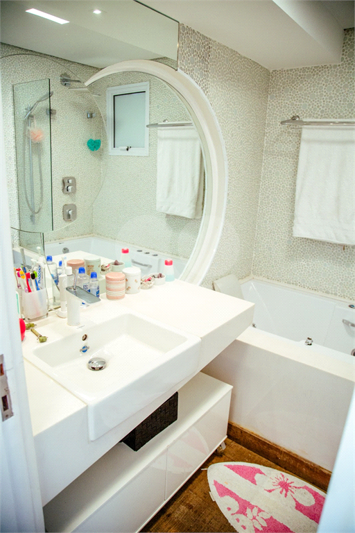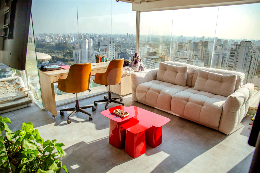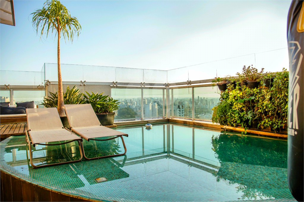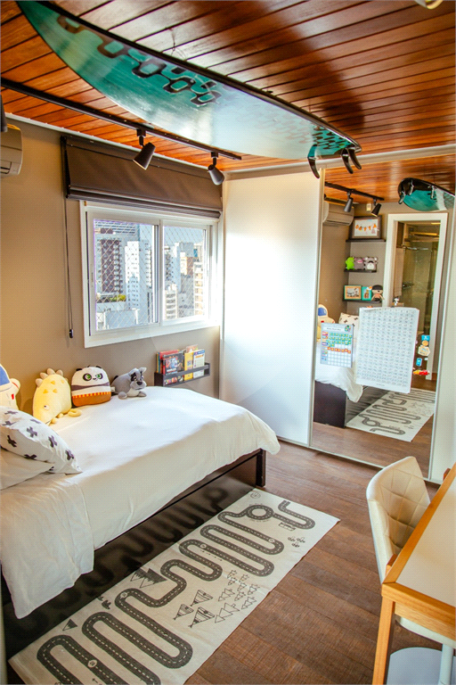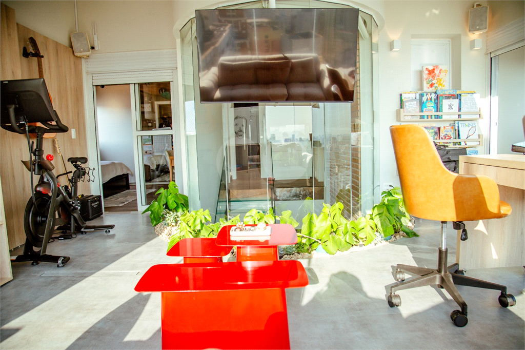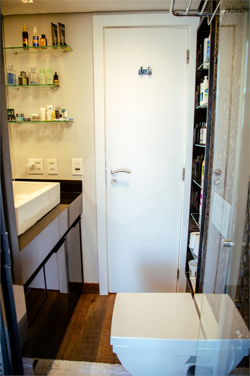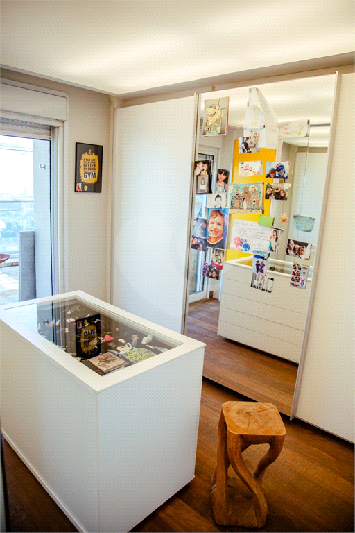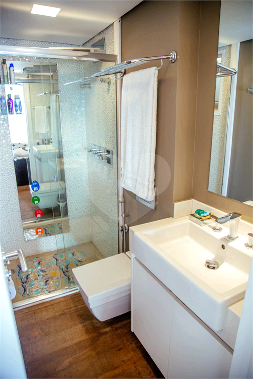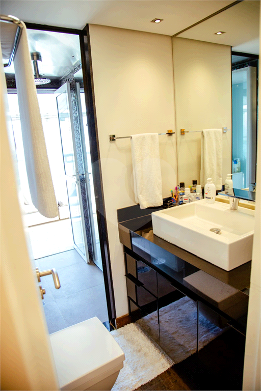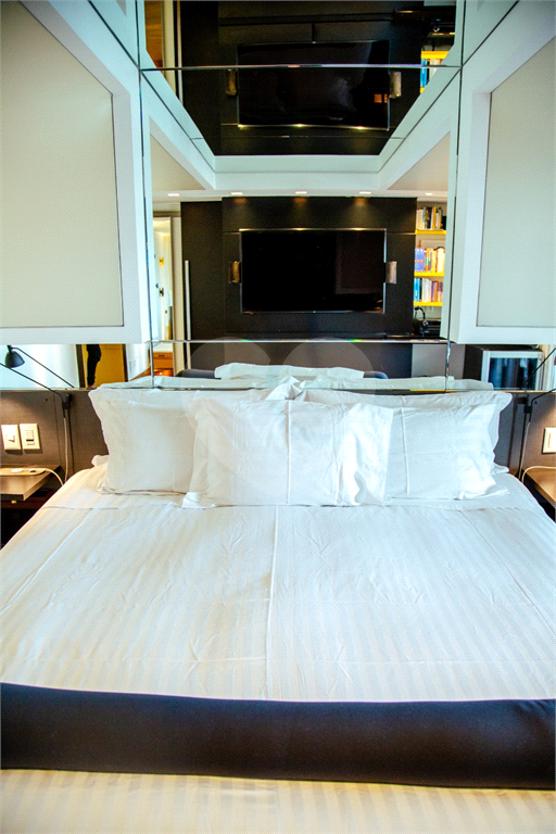 Cobertura duplex Andar de cima: Suíte Master com 2 banheiros (senhor e senhora) e 2 closets (Um dos banheiros tem sauna). Varanda privada da suíte master com deck, mirante e ofurô, escritório, 2 suítes e brinquedoteca/quarto de estudos Andar de baixo: 1 quarto sem ser suíte (hoje usamos como um segundo escritório). Sala de TV com projetor e telão, 1 lavabo e 2 banheiros, Área externa com deck, churrasqueira, chuveiro, Piscina aquecida Acabamentos: Cozinha e Adega - Valcuccine. Marcenaria – Segatto Casa toda automatizada: som, luzes, TV, persianas e ar-condicionado Todos os metais (chuveiros, torneiras) e louças (pias, cubas) são são importados Móveis: Estúdio Bola, Ovoo Eletrodomésticos: GE Monogram 5 vagas de garagem e 1 quarto de depósito na garagem