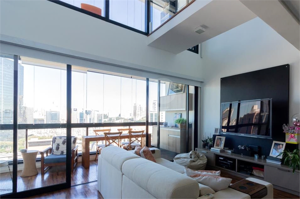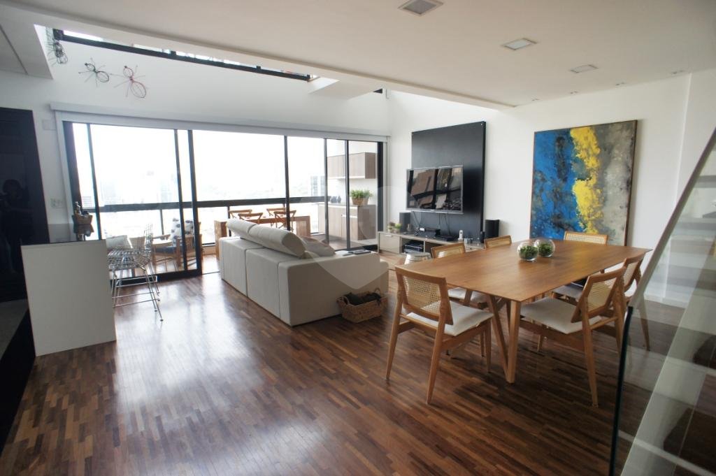 Cobertura duplex com uma vista de tirar o folego! Área social superampla e iluminada. Totalmente mobiliada e equipado, inclusive com rouparia e utensílios domésticos. Salas integradas com piso de madeira, cozinha americana equipada com fogão, coifa, micro-ondas, refrigerador. Lavabo. Através de uma charmosa escada chega-se a área intima com uma suíte e varanda fechada com vidro com espaço para o seu home –office. Marcenaria e ar condicionado em todos os ambientes. Área de serviços com máquina de lavar e secar roupas. Área comum : piscina com raia, sauna, espaço zen, fitness e espaço gourmet. 3 vagas de garagem. Em uma das regiões mais procuradas de São Paulo, Vila Olímpia, um bairro que reúne modernidade, tecnologia. O edifício fica em uma localização ímpar. Próximo do Shopping Vila Olímpia, Shopping JK Iguatemi, Parque do Povo e Estação Vila Olímpia. Mobilidade total