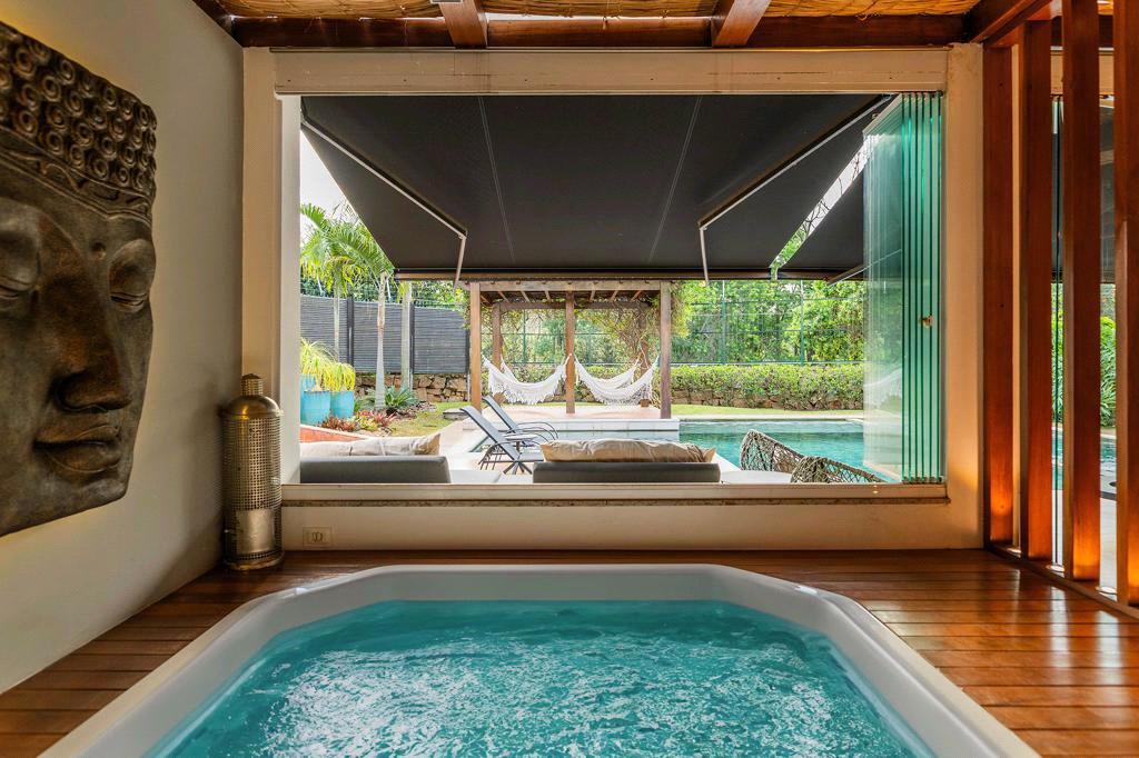 CASA RESORT Casa de esquina maravilhosa de altíssimo padrão em condomínio fechado, localizada na região da MALOTA, a área mais nobre e desejada de Jundiaí. Distante 40 minutos de São Paulo e 20 minutos de Campinas. Acesso fácil para as Rodovias Bandeirantes e Anhanguera Um verdadeiro RESORT privativo. - 4 suítes / 10 banheiros no total - AC 488 m - AT 763 m - 6 vagas de garagem. - escritório home office. - projeto paisagístico com irrigação automatizada e iluminação planejada - vista privilegiada para a serra do Japi. - lindíssima sala principal com lareira em mármore Nero Marquina preto, e cortinas automatizadas. - elevador integrado ao projeto arquitetônico - Cozinha principal com coifa industrial e pedra Silestone. - Área gourmet com churrasqueira, forno de pizza, balcão com cuba dupla, montada para atender 50 convidados. Dois lavabos internos , ambiente com decoração deslumbrante. - banheiros com ducha na área de Spa. - cozinha extra de apoio completa, coifa industrial ,com banheiro e entrada secundaria para manter a privacidade de seus convidados. - Sala de louças. - Piscina espetacular em pedra hijau , com bordas em Castelatto atérmico, iluminação multicolorida , hidromassagem e aquecimento solar e elétrico. - Área coberta decorada e climatizada com JACUZZI - Redário - Toldo retrátil automatizado articulado. - Espaço multimídia com tela de 100 polegadas , home theater Surround Sound e projetor HD. - Andar superior com piso em madeira cumaru . - Suíte casal com banheiros e closets individuais para Sr. e Sra. JACUZZI no banheiro Sra. - Closet Sra. para 300 pares de calçados. - Casa rica em armários laqueados, marcenaria planejada - Ar condicionado quente e frio em todos os ambientes - Torneiras da casa com água quente fria, exceto lavabo. Aquecimento solar. - metais Deca em toda a casa. - Portas e Janelas em PVC Alemão com blecaute e telas mosquiteiro. - Pomar com frutas ervas aromáticas - Depósito na garagem e depósito subterrâneo